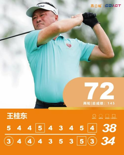 王桂东本轮从2号洞出发,前九洞比陈沄多吞下一个柏忌,转场后他先后在10号、12号洞抓到小鸟球,17号洞吞柏忌后,18号洞又凭借小鸟球反弹,最终同样以72杆完赛,两轮成绩与陈沄成绩持平。